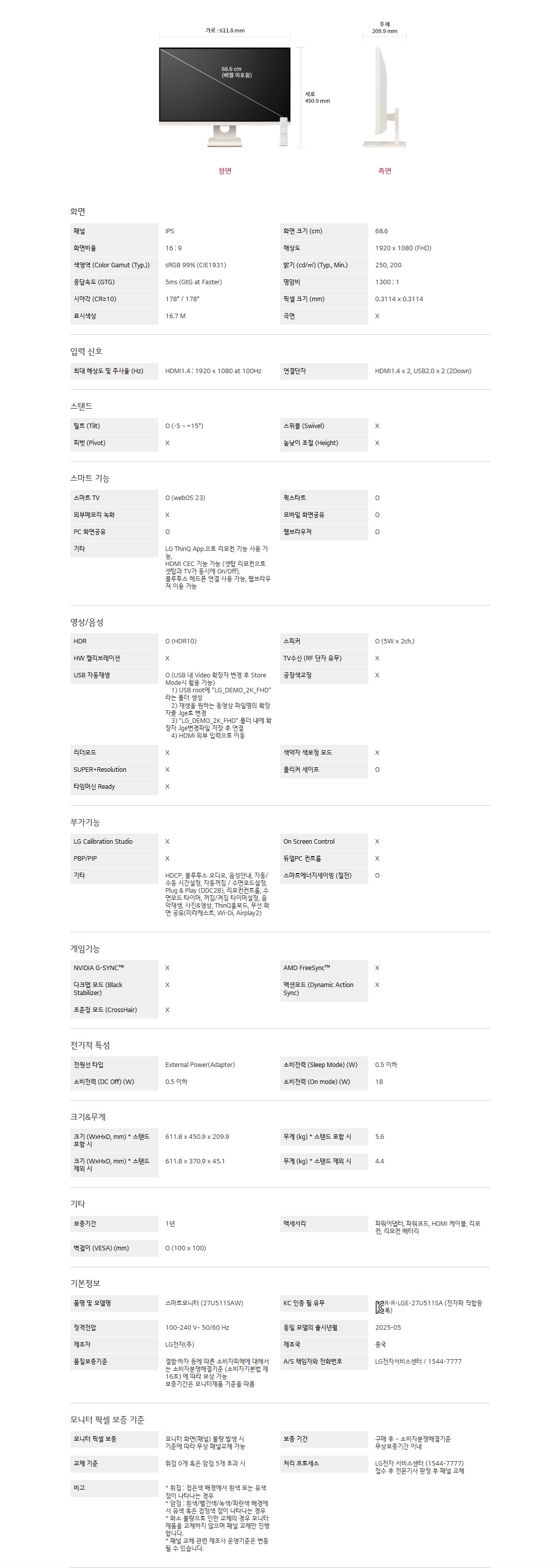 화면 크기 : 68.6cm