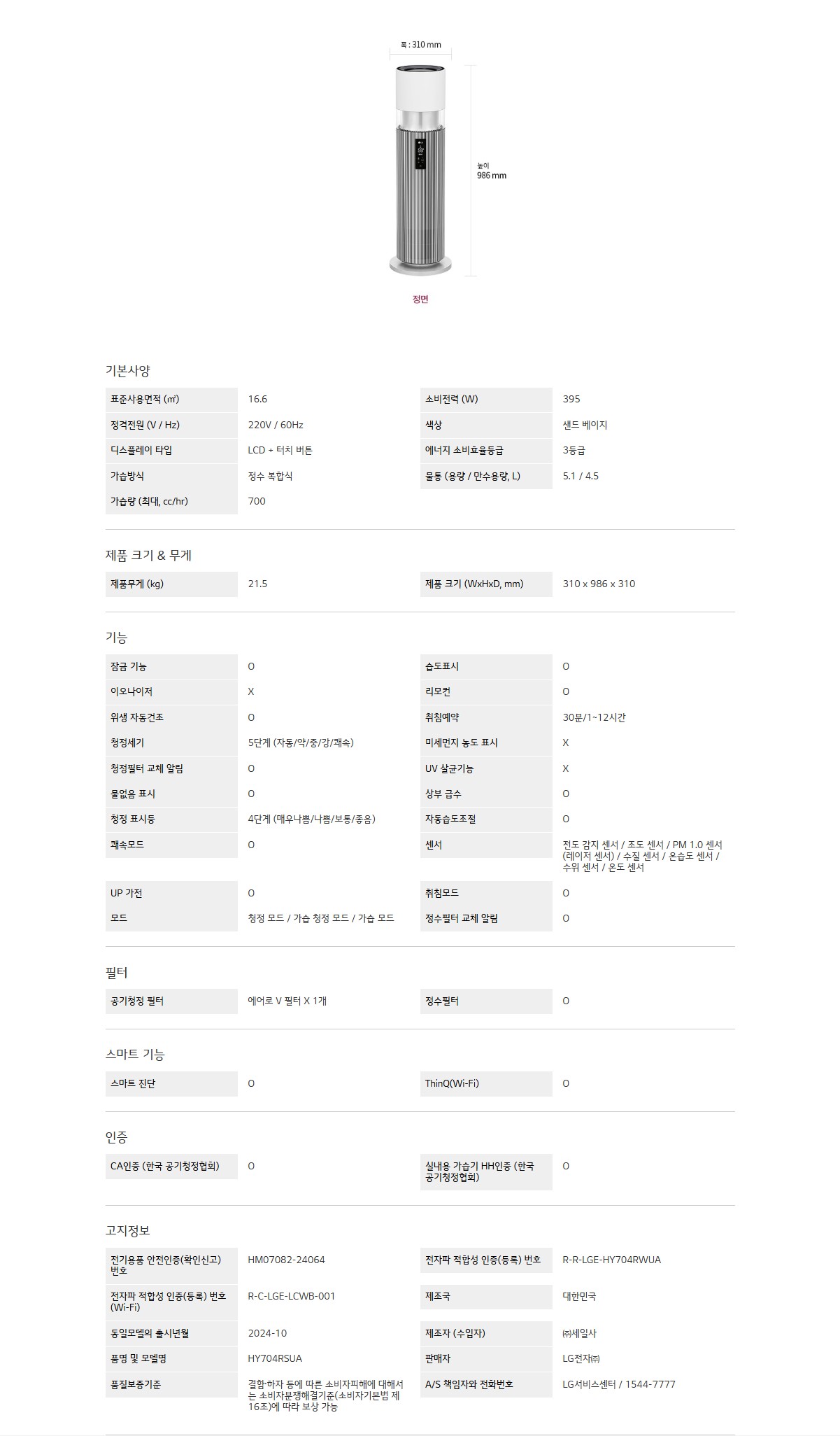 LG 퓨리케어 오브제컬렉션 하이드로타워