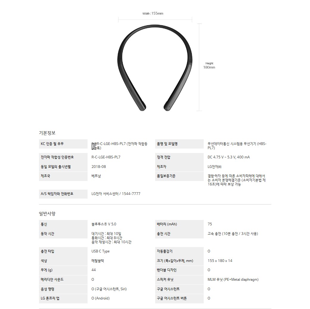 통신 : 블루투스® V 5.0동작 시간 : 대기시간 : 최대 10일통화시간 : 최대 8시간음악 재생시간 : 최대 10시간충전 시간 : 고속 충전(10분 충전/