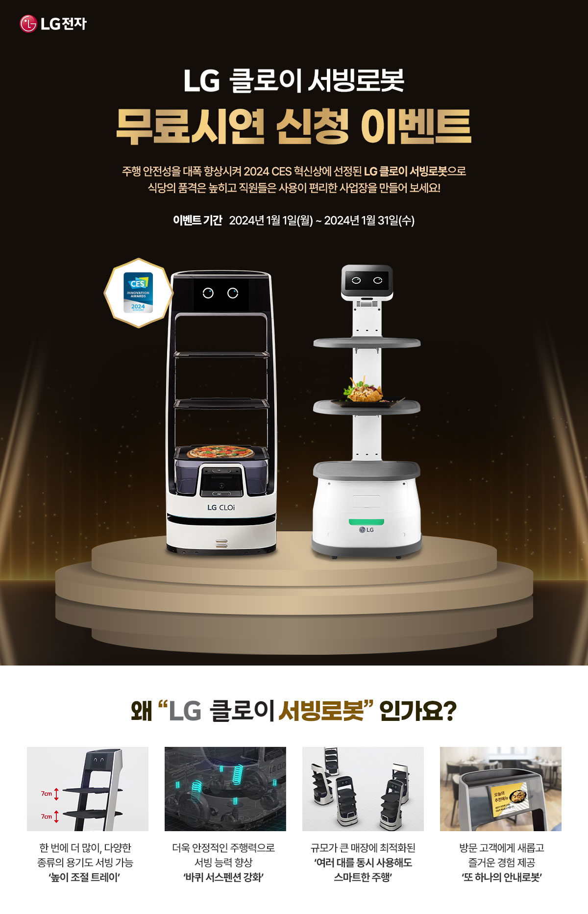 | LG클로이 서빙로봇 무료시연 신청 이벤트 2024.01.09 |