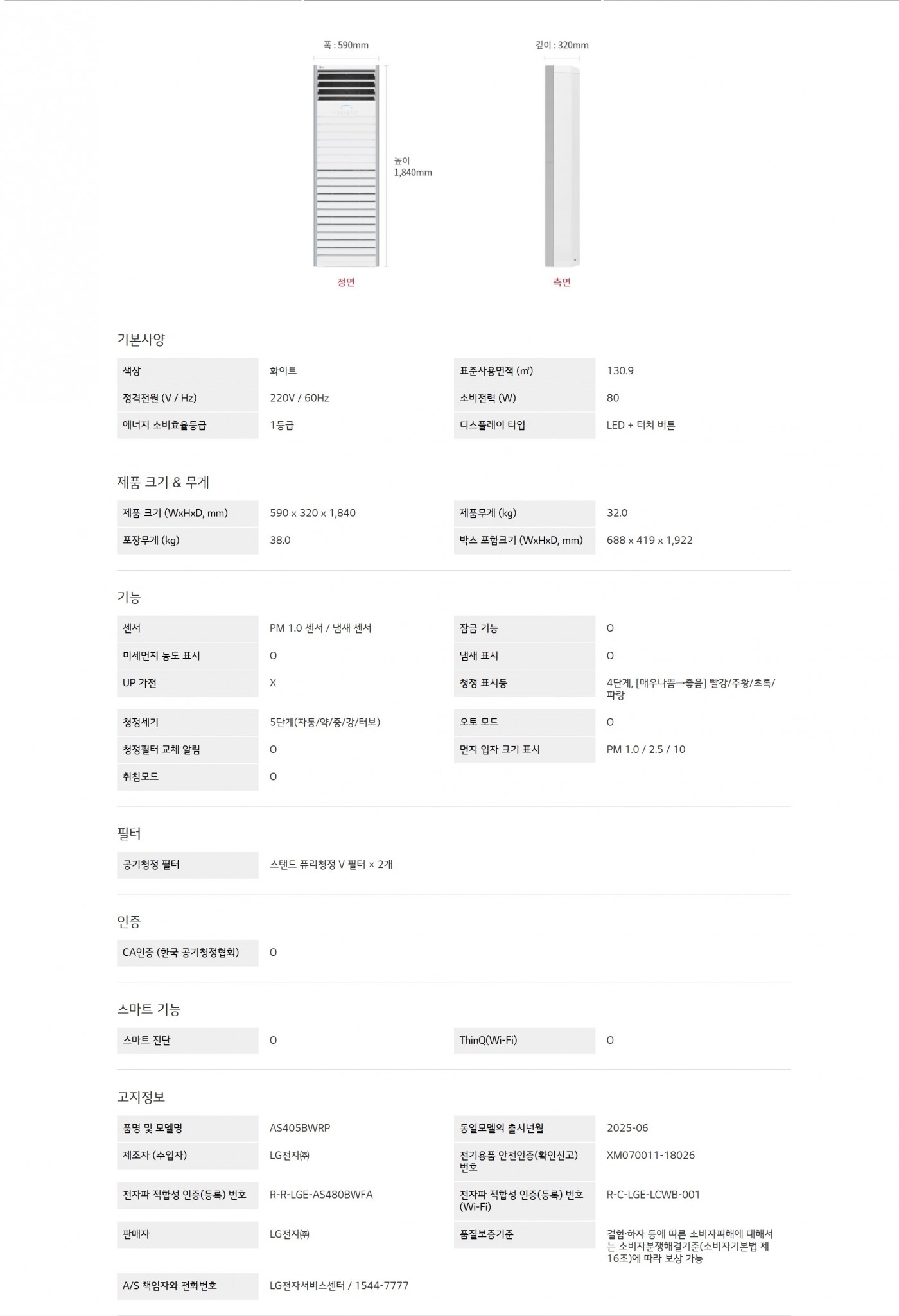 LG 퓨리케어 스탠드 공기청정기