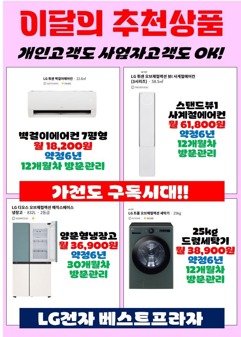| 가전도 구독(렌탈)시대! 모든가전 렌탈가능합니다! 2025.01.07 |