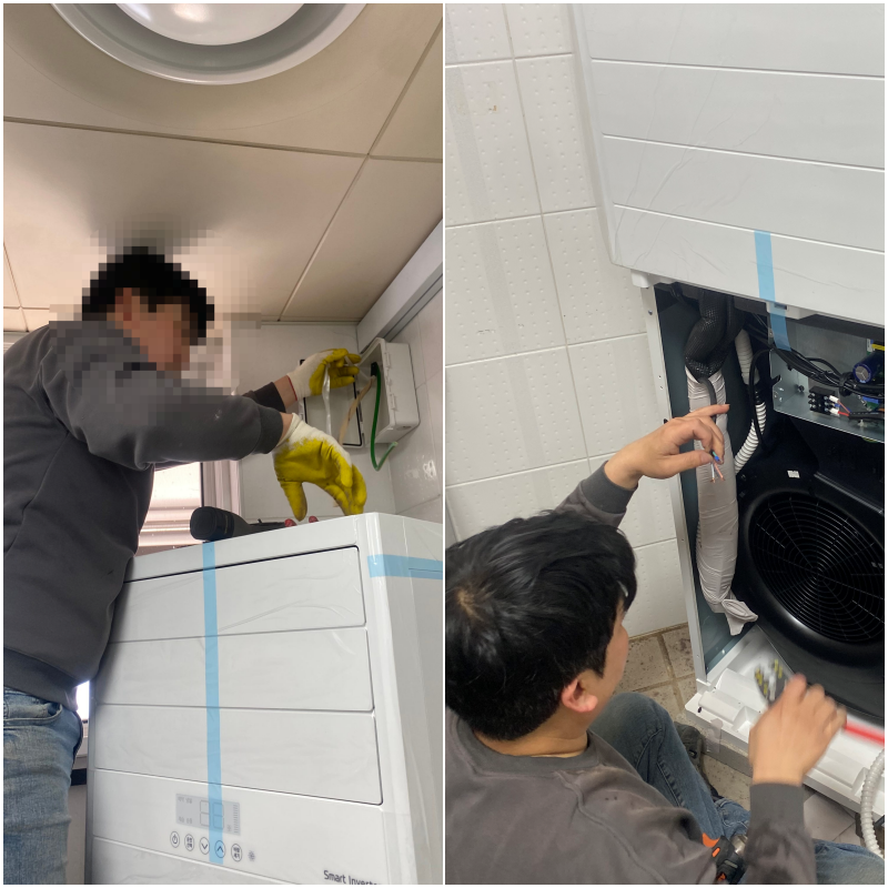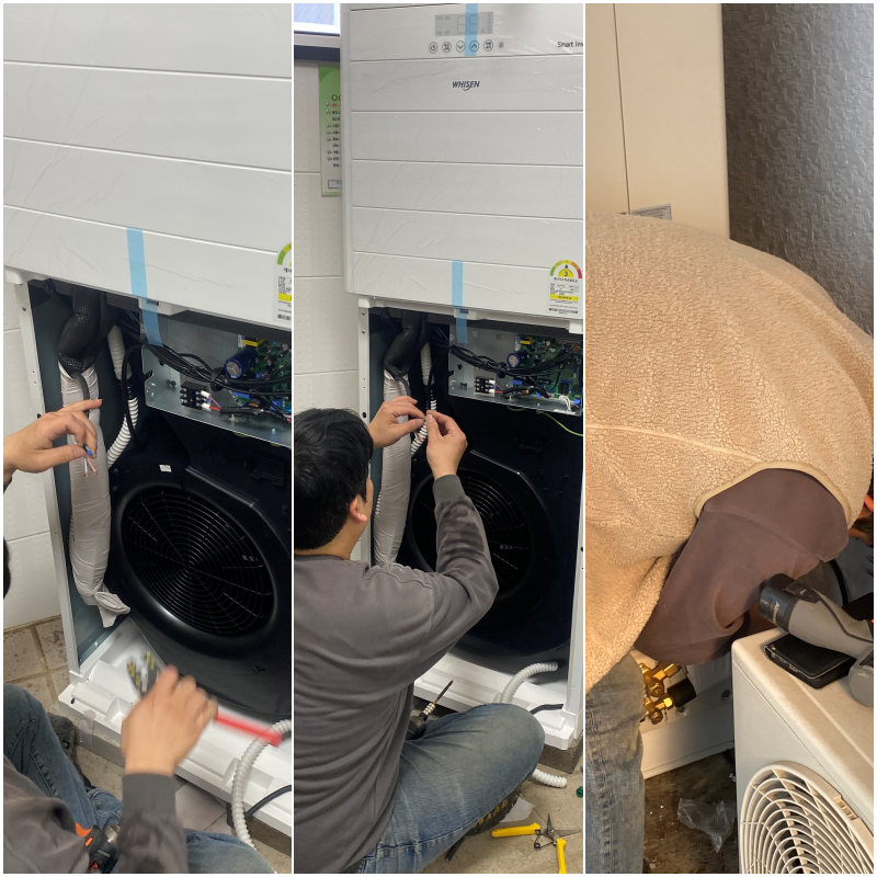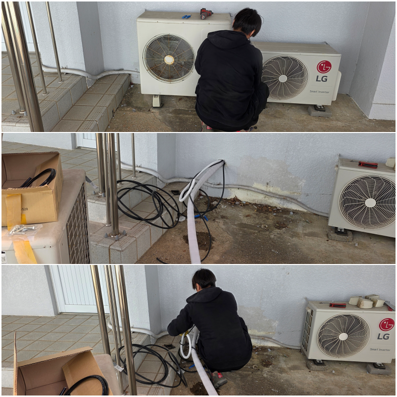 기존에 사용하던 제품의 실외기를 치우고 배관 길을 확보합니다~